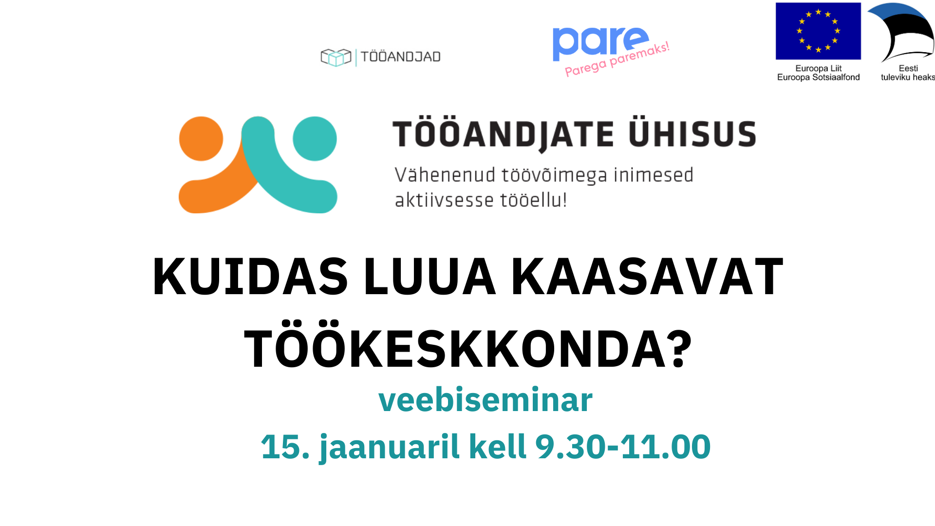 2021. aastal on mitmekesisus töökeskkonnas aktuaalsem kui kunagi varem. Tööandjana peame üha rohkem arvestama töötajate ja klientide individuaalsete erinevustega ja vajadustega, mis omakorda aitab kaasa organisatsiooni edule nii tööandjana kui ärilises plaanis. Jagame Tööandjate Ühisuse tasuta veebiseminaril tööandjate kogemuslugusid ja nõuandeid, kuidas luua keskkond, mis arvestab vähenenud töövõimega inimestega ning muudest eripäradest tuleneva mitmekesisusega.