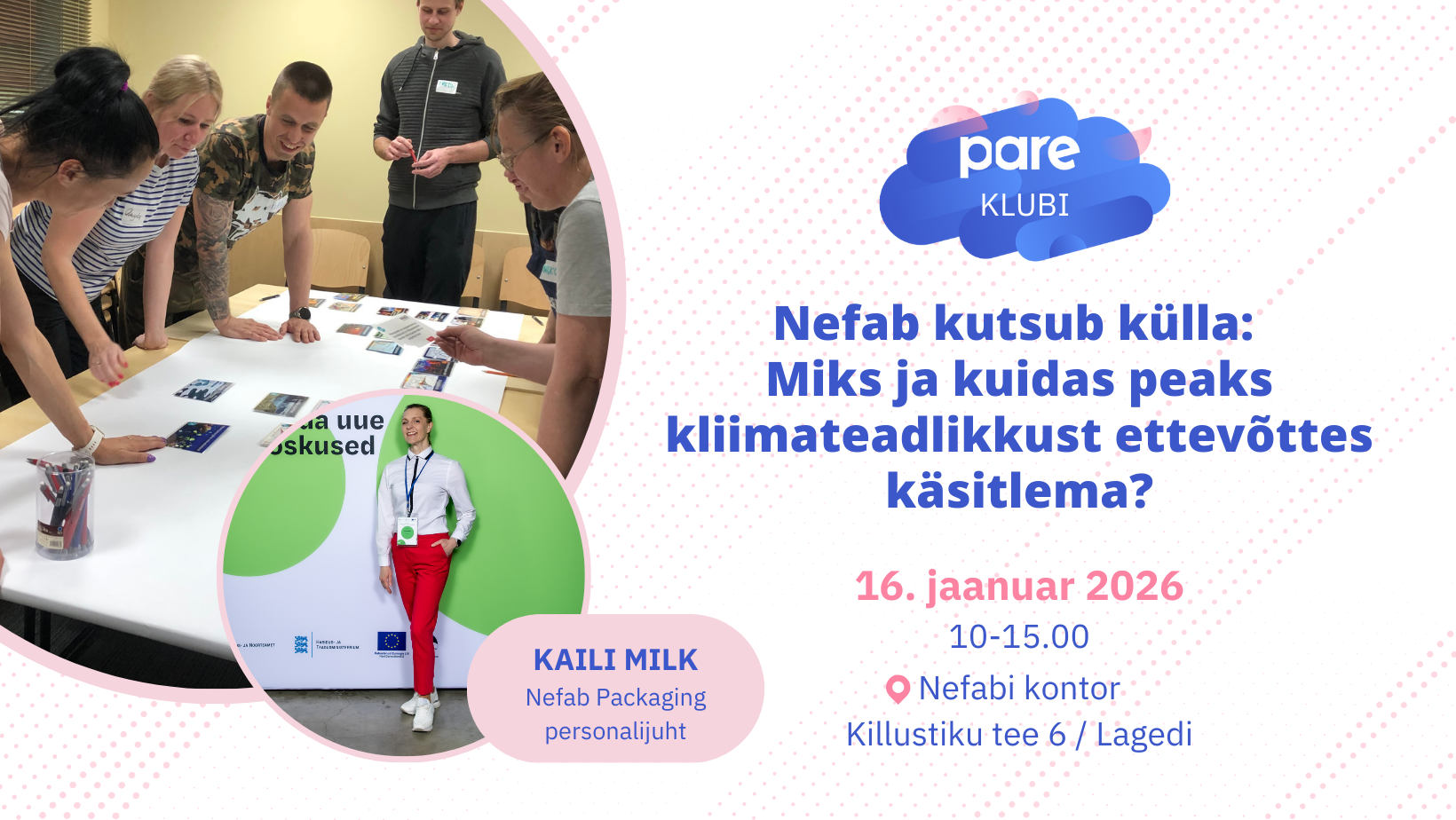Kutsume Sind 16. jaanuaril inspireerivale PARE klubi kohtumisele Nefabisse, kus avame oma kogemusloo kliimateadlikkuse kasvatamise teekonnast ettevõttes – miks oli see strateegiliselt oluline ja kuidas seda tegime.