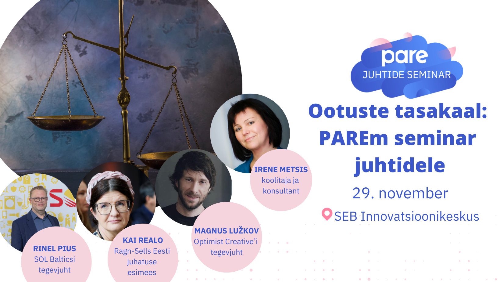 Miks PAREm seminar? Sest korraldajaks on PARE, kes seisab juhtimiskvaliteedi arengu eest Eesti organisatsioonides. Seminar on avatud kõigile juhtidele ka organisatsioonidest, kes täna veel PAREsse ei kuulu.