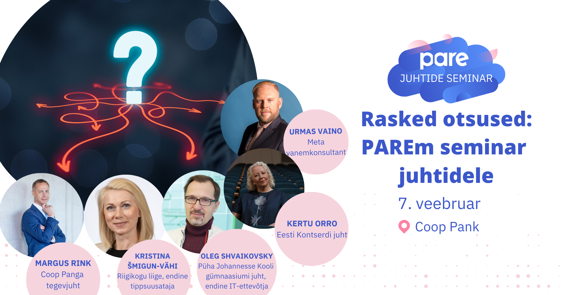 7. veebruaril toimub PARE juhtide seminar „Rasked otsused“, kus oma ala tipud jagavad, milliseid raskeid otsuseid on nad vastu võtnud. Nad avavad tagamaid ja telgitaguseid, millest ei ole varem avalikult räägitud ja millest räägitakse nüüd ainult sellel seminaril kohapeal.