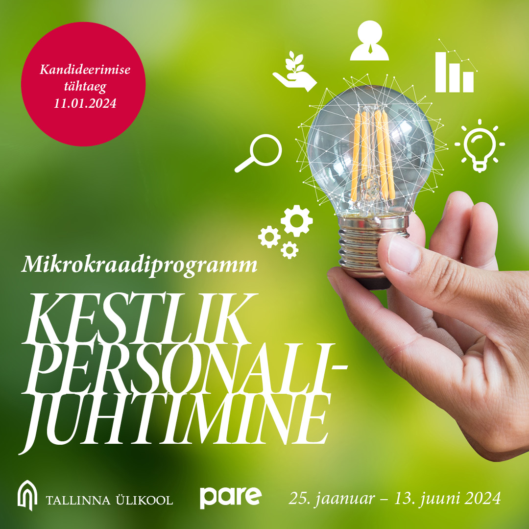 PARE ja Tallinna Ülikool koostöös saab uuest aastast õppida viimastel aastatel aina olulisemaks muutunud teemat ehk kestlikku personalijuhtimist. Mikrokraadiprogrammi eesmärk on omandada teadmisi ja oskusi, et lisada kestlikku vaatenurka traditsioonilistele inimeste juhtimisega seotud praktikatele.