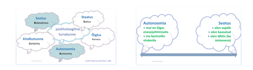 Psühhooloogilisele turvatundele avaldavad mõju viis sotsiaalse kogemuse komponenti, mida aju käsitleb kasu või ohuna. Kaugtöö puhul autonoomia ning seotus kerkivad eriti esile. Kuidas olla iseseisev ja ka seotud samal ajal? Kuidas juhina toetada mõlemaid?